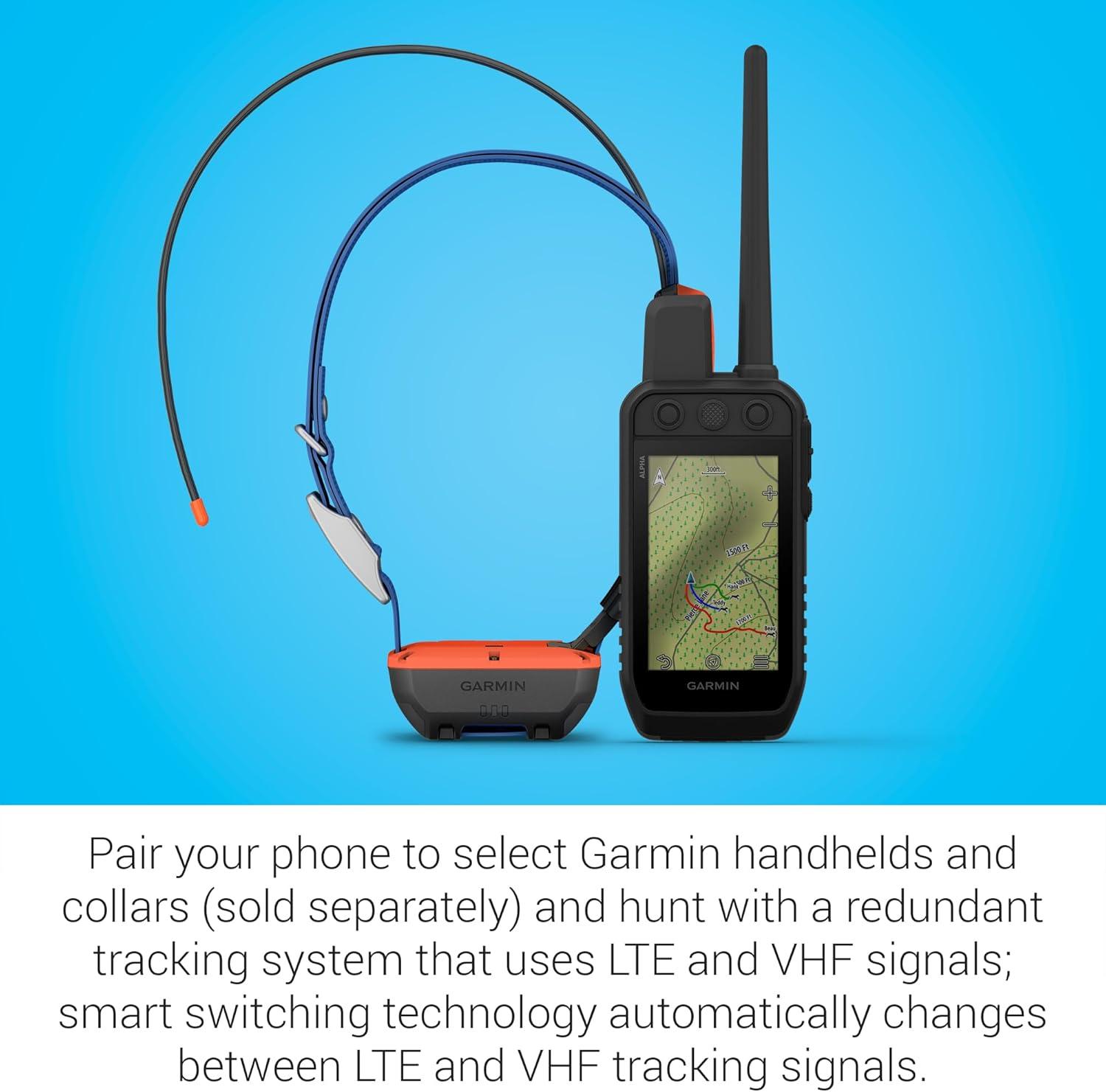 Connect to the hunt with the Alpha® LTE dog tracker, which uses cellular technology (subscription required). Attach it to your dog’s collar, and use your compatible smartphone to track your dog’s movements with the Alpha® app. Connect your Alpha LTE tracking system to a compatible Garmin VHF dog tracking system (sold separately) to leverage either LTE or VHF tracking signals. Use the Alpha app to navigate and mark waypoints with integrated mapping. Access the community hunting features on the Easyhunt™ app to plan, organize and coordinate with your entire hunting party (subscription required). This rugged dog tracker uses multi-GNSS technology to provide you with the precise location of your dog during the hunt. The multicolor LED lights make it easy to identify your dog in the dark. Get up to 32 hours of battery life when using dynamic tracking.