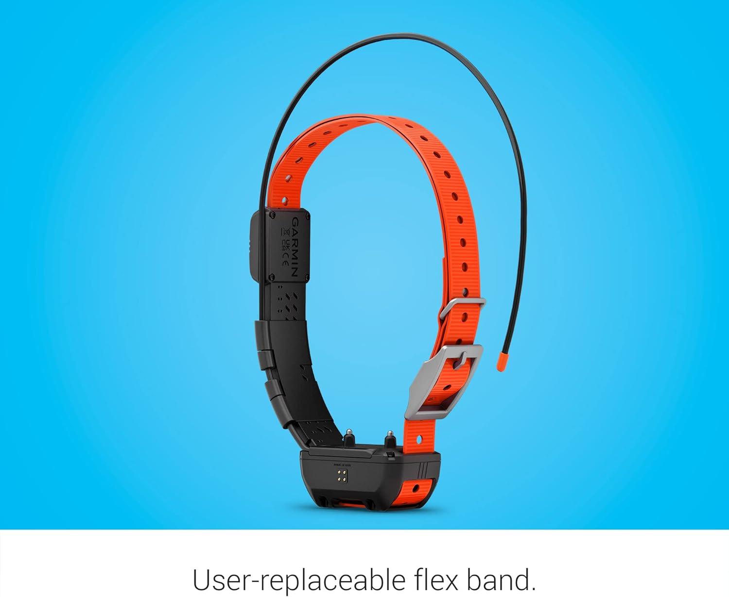 Track and train your pack with the Alpha® TT 25 dog collar. The rugged yet slim housing is designed to fit a range of breeds and features a user-replaceable flex band. When used with a compatible handheld (sold separately), you can track and send training commands up to 9 miles. A built-in multicolor LED makes identifying your dog easy, even in darkness. It also can be used to train your dog. The collar features 18 levels of momentary and continuous stimulation as well as tone and vibration for training. Get up to 68 hours of battery with the standard battery pack, or upgrade to the expanded battery pack to get up to 136 hours with dynamic tracking — which optimizes update rates based on how your dog is moving. Plus, when charging and connected to your network with Wi-Fi® technology, the collar will automatically install the latest software updates.