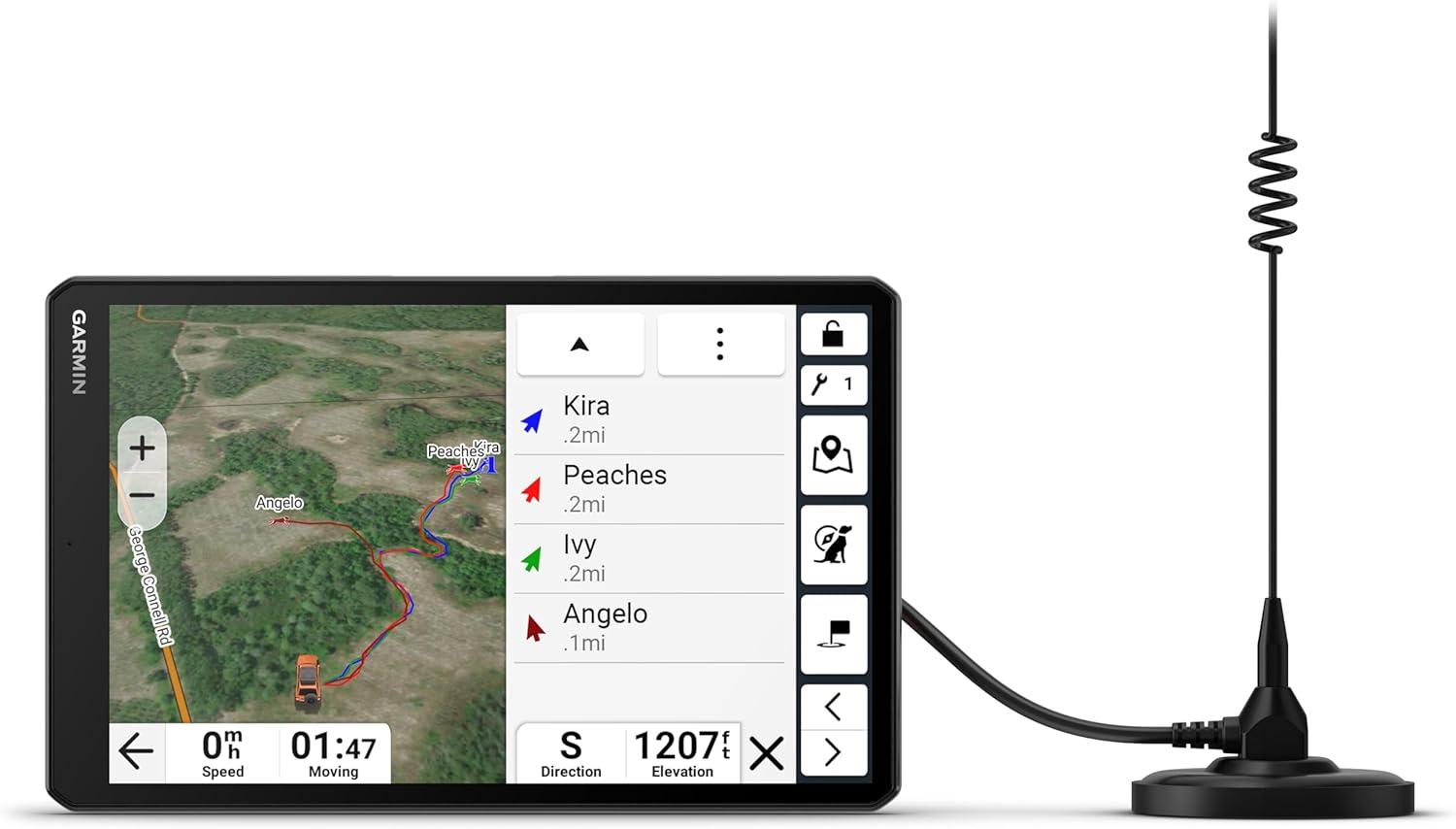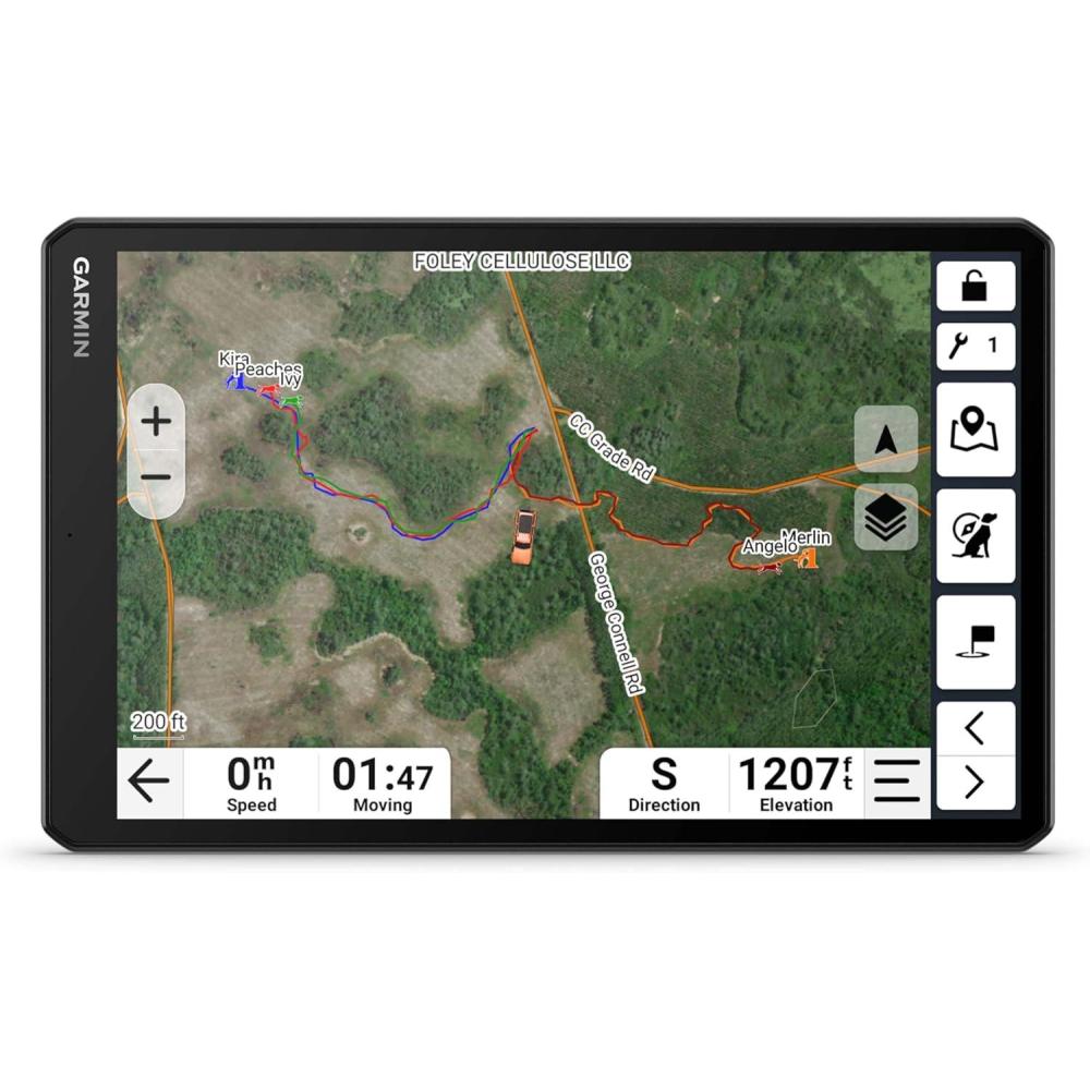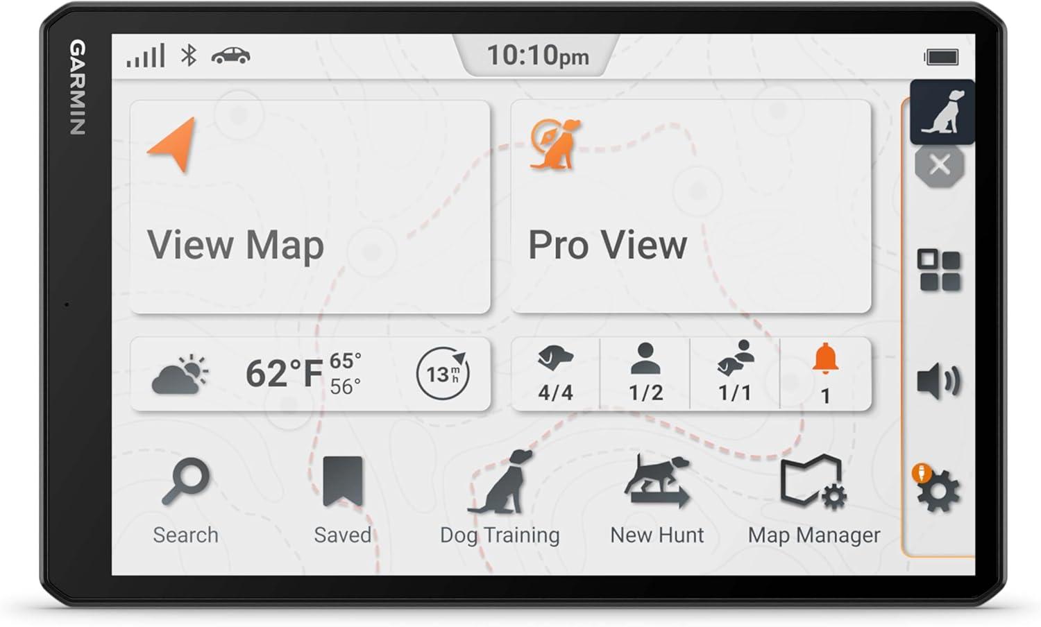 Track your pack from your truck. Monitor and recall your dogs in the field with the Alpha® XL dog tracking GPS navigator. It shows you the way, on- or off-road, and pairs directly with your compatible dog collars via VHF radio — so you can follow up to 20 dogs from up to 9 miles away. See the location of your dogs in real time on the large 10” touchscreen display. To reach your hunting grounds, get turn-by-turn navigation for streets, unpaved roads and trails. City Navigator® maps provide routing where there’s pavement. Once in the field, off-road tools include satellite imagery, high-definition elevation maps, adventure roads and trails content, a 3-axis compass and more. Deliver training commands — from 18 levels of stim, tone and vibe — to your paired training-enabled dog collars from the touchscreen while viewing each dog’s distance traveled, average speed, barks per minute, geofencing alerts, collar battery level and other settings. A helpful channel view feature lets you monitor the congestion of collars on individual channels to avoid frequency interference. Dog list storage for up to 250 dogs in the device’s memory lets you easily manage your active groups, so you don’t have to manually reenter dogs’ names for every hunt.
