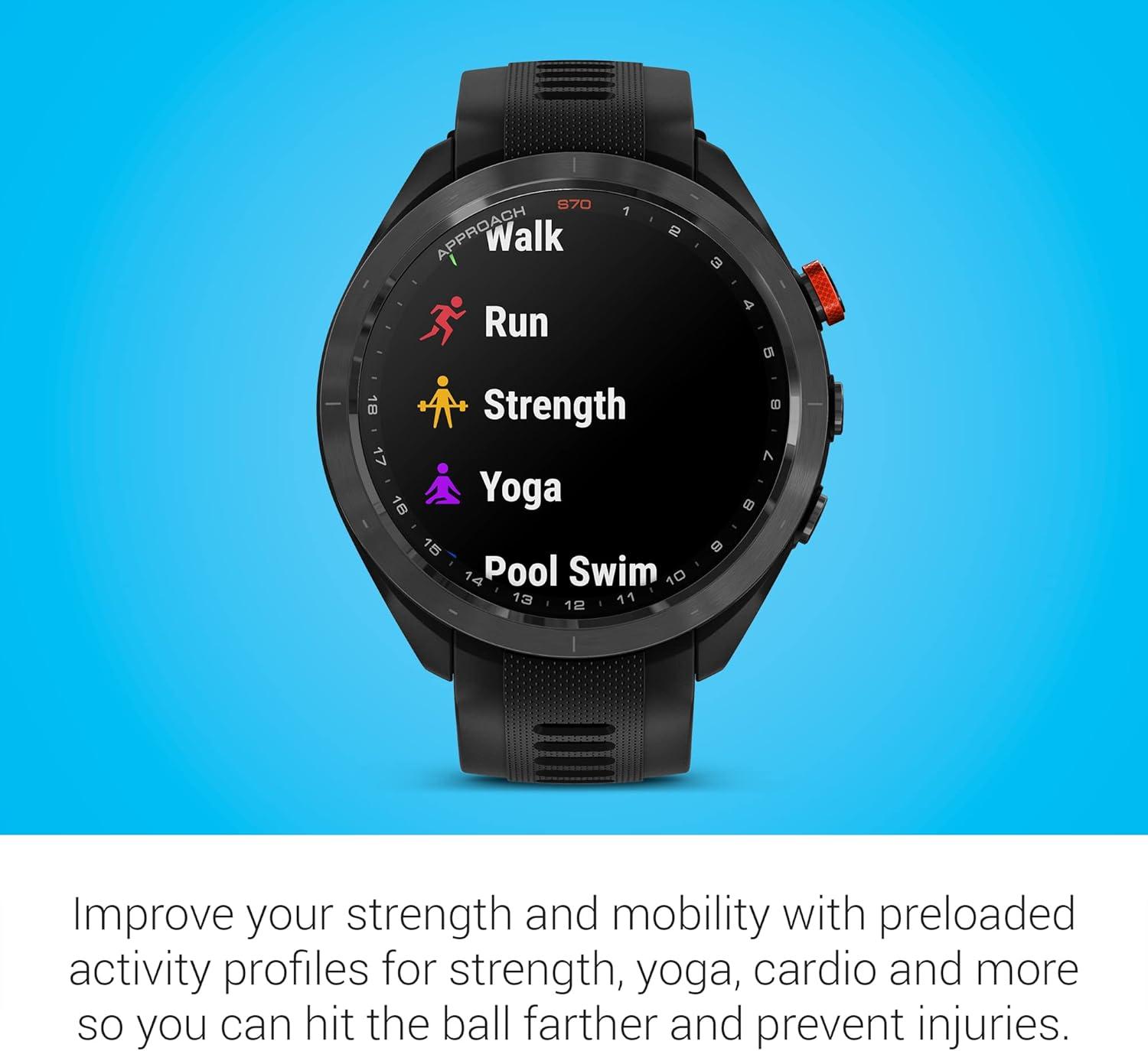 If golf is your world, Approach® S70 is your watch. Featuring a stunning 1.2” AMOLED display, this smaller-sized premium smartwatch brings more than 43,000 courses to life and features all the on-course tools you need to lower your handicap. The improved virtual caddie feature provides a recommended club based on your shot dispersion data, elevation and more. An enhanced PlaysLike Distance feature utilizes a built-in barometer, so you’ll know how far each shot is playing. And on your way to the hole, preloaded green contour data gives you insights into slope direction of the green (with an active Garmin Golf™ app membership). The slim, stylish design looks great on and off the course, with features that support your training — and lifestyle — including strength, yoga and running. Also get heart rate and advanced sleep monitoring for an extra edge when you’re on the course (data presented is intended to be a close estimation of metrics tracked). With up to 10 days of battery life in smartwatch mode and 15 hours in GPS mode, you’ll always have time for another round.