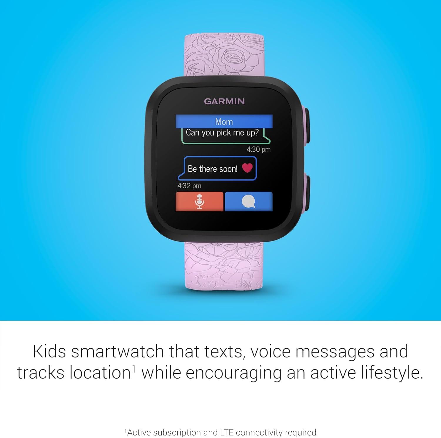 Real-time location tracking lets you check in on your child’s whereabouts through the Garmin Jr. app on your compatible smartphone and even receive notifications when your child enters or leaves parent-defined boundaries (active subscription and LTE connectivity required)
