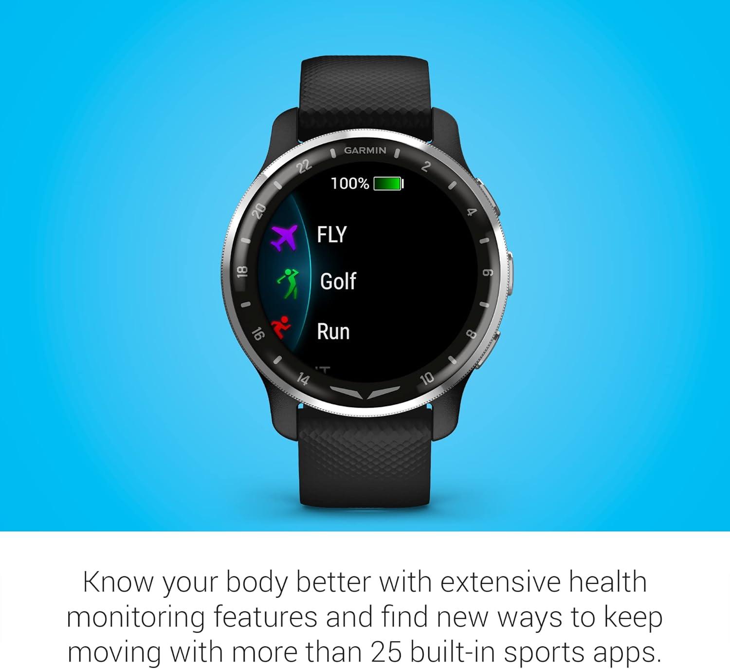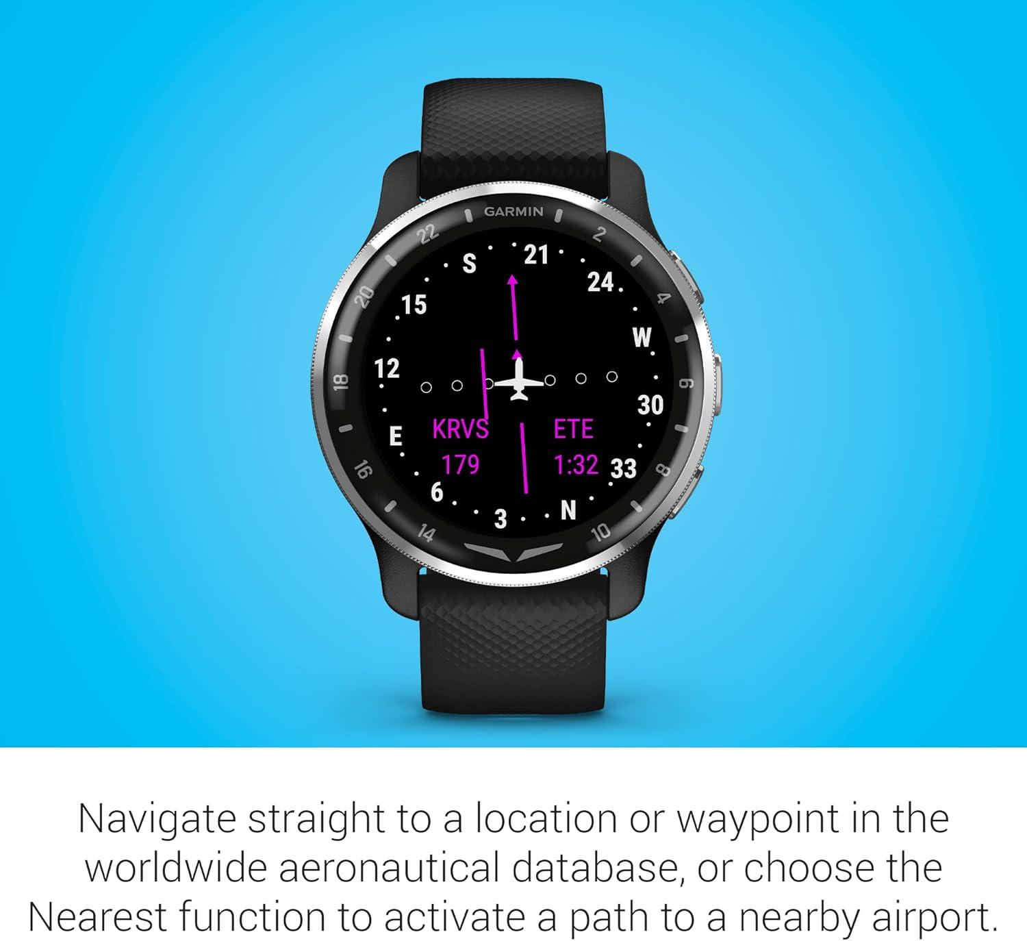Navigate your day with D2™ Air X10. This GPS aviator smartwatch has piloting tools you’ll want preflight, in-flight and postflight — including aviation weather (when paired with your compatible smartphone), navigation capabilities with the worldwide aviation database, airport information and automatic flight logging. It offers advanced health and fitness features to help you track your wellness. When paired with your compatible smartphone (certain smartphones not compatible), you can enjoy the convenience of making and taking calls right from your wrist, and using your smartphone’s voice assistant to respond to text messages. Switch up your activities with more than 25 built-in sports apps. Music storage lets you bring your favorite tunes along. And get even more functionality on the wrist with Pulse Ox monitoring (not available in all countries), connectivity with the Garmin Pilot™ smart-device app, alerts, timers and more — plus battery life of up to 7 days.