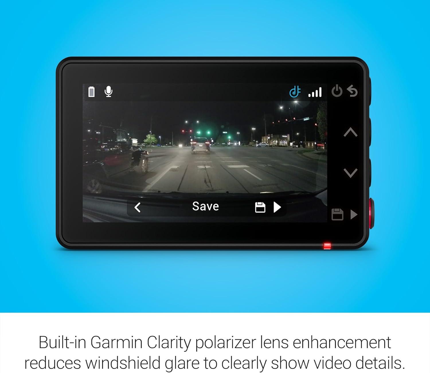 Built-in Garmin Clarity polarizer lens enhancement reduces windshield glare to clearly show important video details