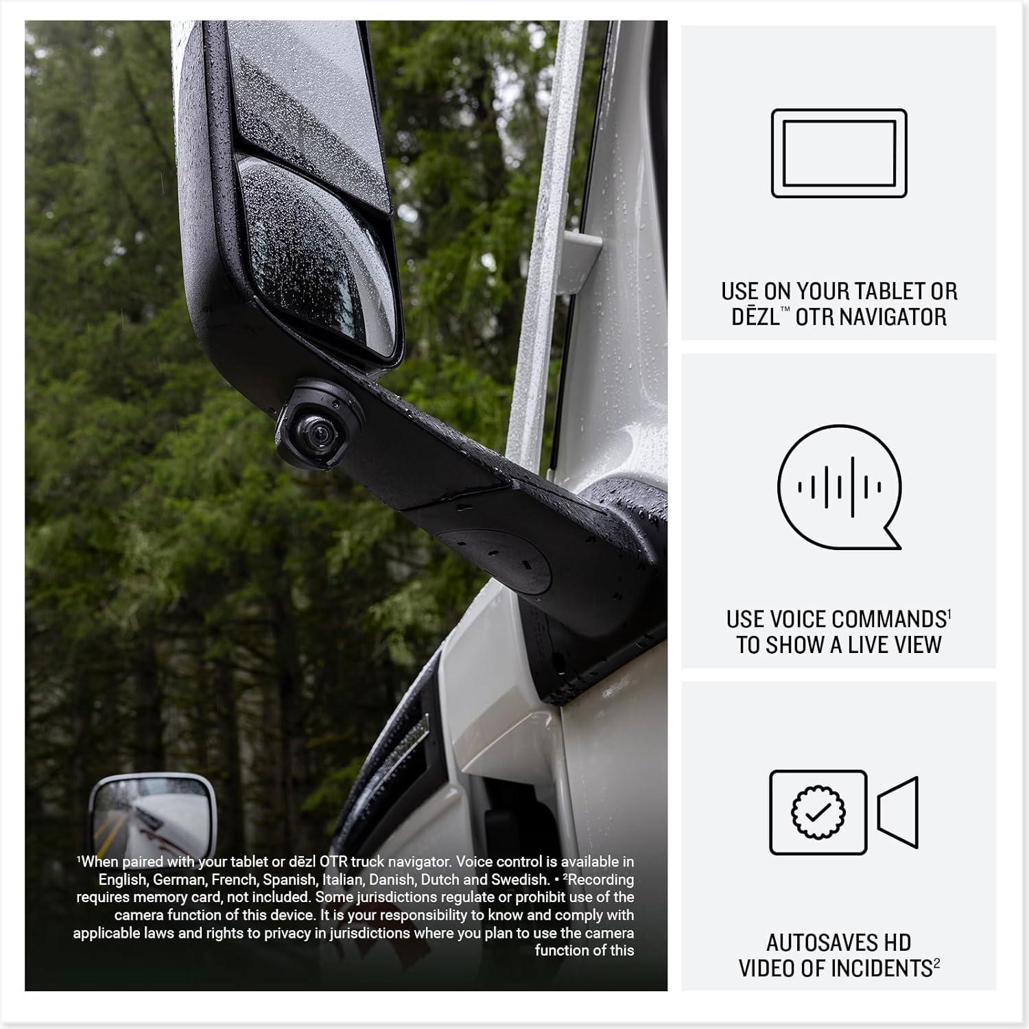 Sleek flush-mount installation to side mirrors or other flat surfaces on your truck (professional installation is recommended); adjustable camera lens angles make for easy setup and alignment by using the Garmin Drive app on your paired tablet or smartphone