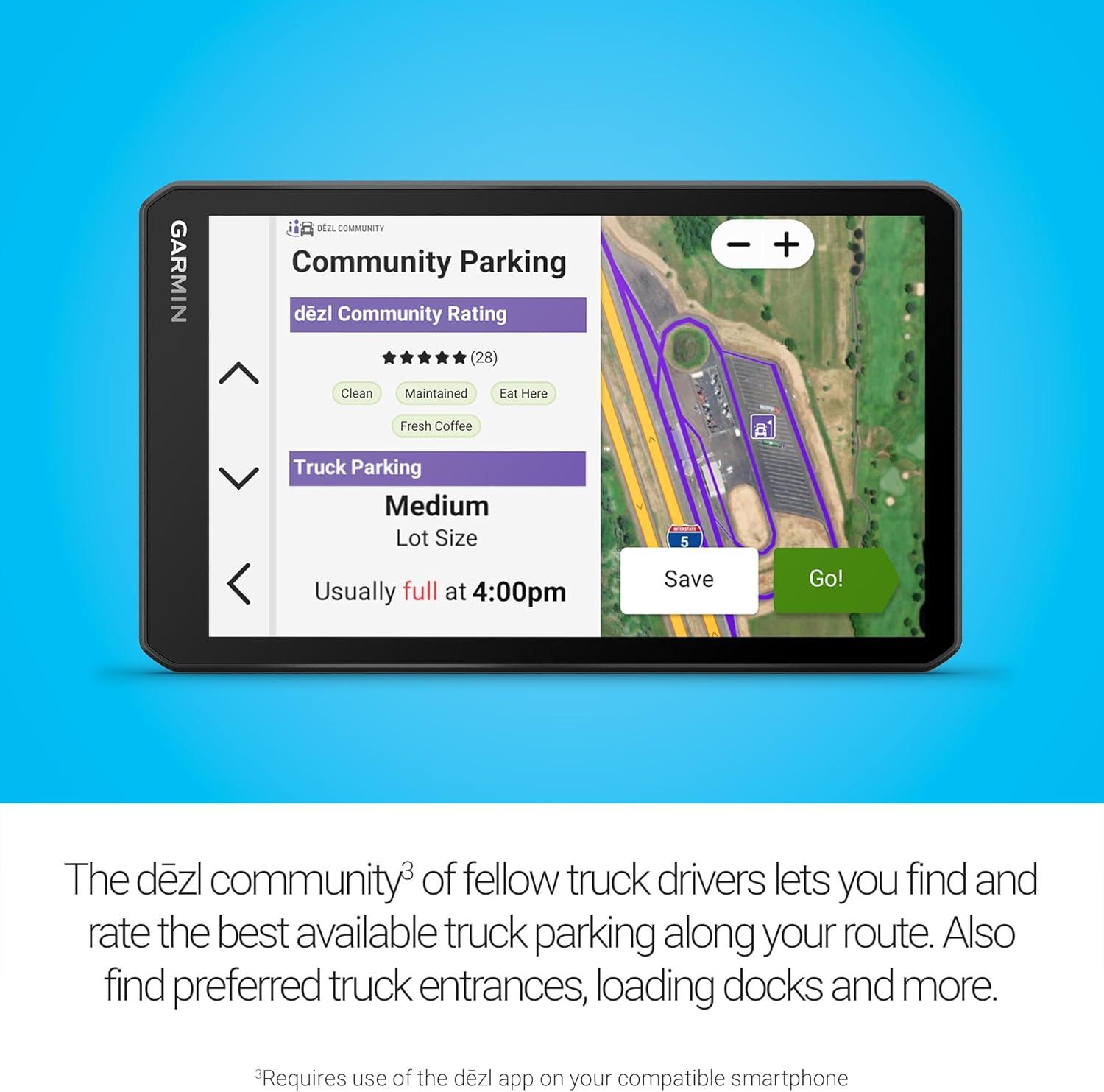 Garmin dēzl™ OTR1020, Extra-Large High-Res 10” GPS Truck Navigator, Custom Routing, Satellite Imagery, Wind Speed, Community-Shared Loading Docks, Entrances and Parking(7″)