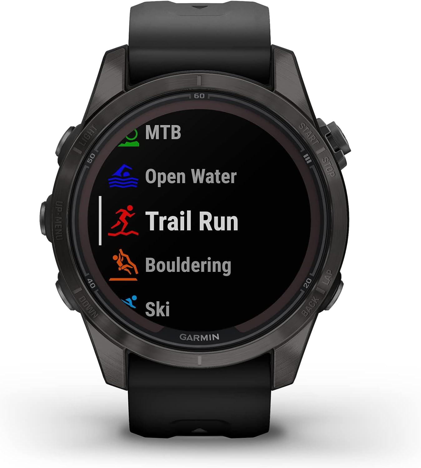 Garmin fēnix 7S Pro Sapphire Solar, Multisport GPS Smartwatch, Built-in Flashlight, Solar Charging Capability, Sand(Carbon Gray DLC Titanium w/ Black Band)