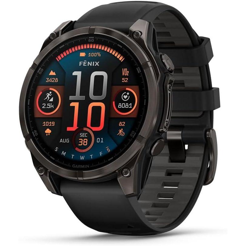 imageGarmin fnix E  47 mm AMOLED Premium Multisport GPS Smartwatch LongLasting Battery Life Stainless Steel with Black BandTitanium with Gray Band51 mm