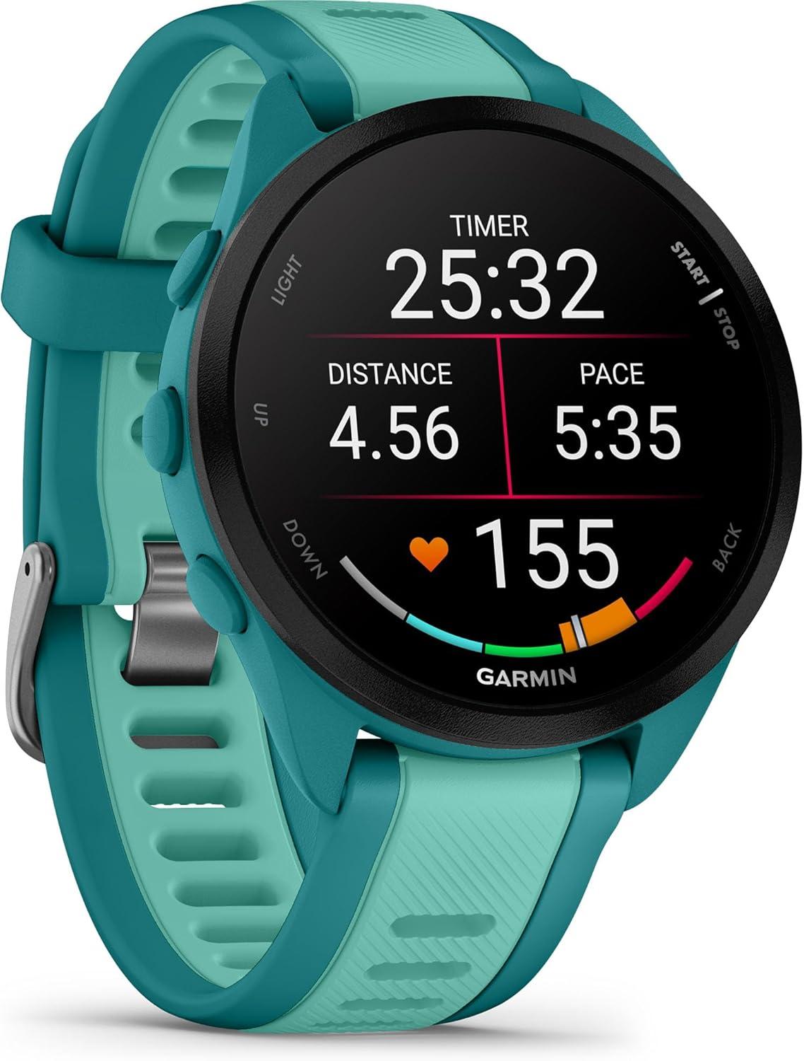 Garmin Forerunner 165 Music, Running Smartwatch, Colorful AMOLED Display, Training Metrics and Recovery Insights, Music on Your Wrist, Black(Turquoise)