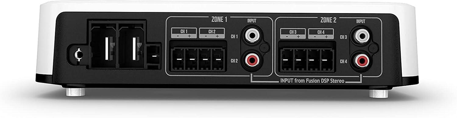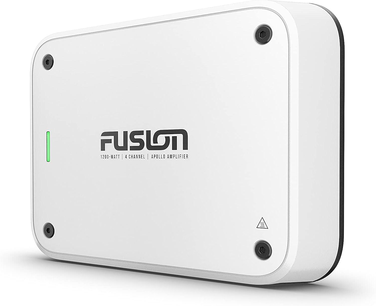 Fusion® Apollo™ marine amplifiers are the difference between hearing the music and feeling it. These amplifiers are efficient, easy-to-install and designed exclusively for use with compatible Fusion DSP-enabled stereos (Apollo RA770, Apollo RA670, Apollo WB670 and RA210) and Fusion speakers. The 4 channel amplifier is designed to power up to four pairs of speakers or two pairs of speakers and one subwoofer with its 1200-watts peak power (150-watt RMS per channel) and features the Easy Tune feature to automatically regulate audio settings for the best sound quality without manual adjustments (requires setup using the Fusion-Link™ app on a compatible smartphone). True-Marine™ designed, the Apollo amplifiers come with a 3 year limited consumer warranty.