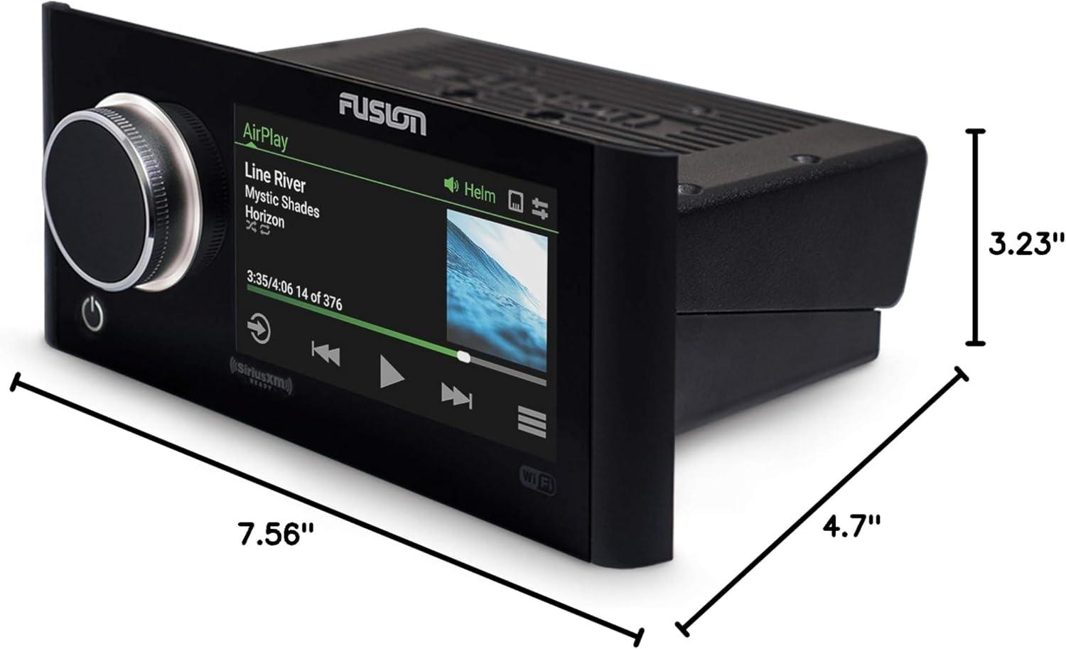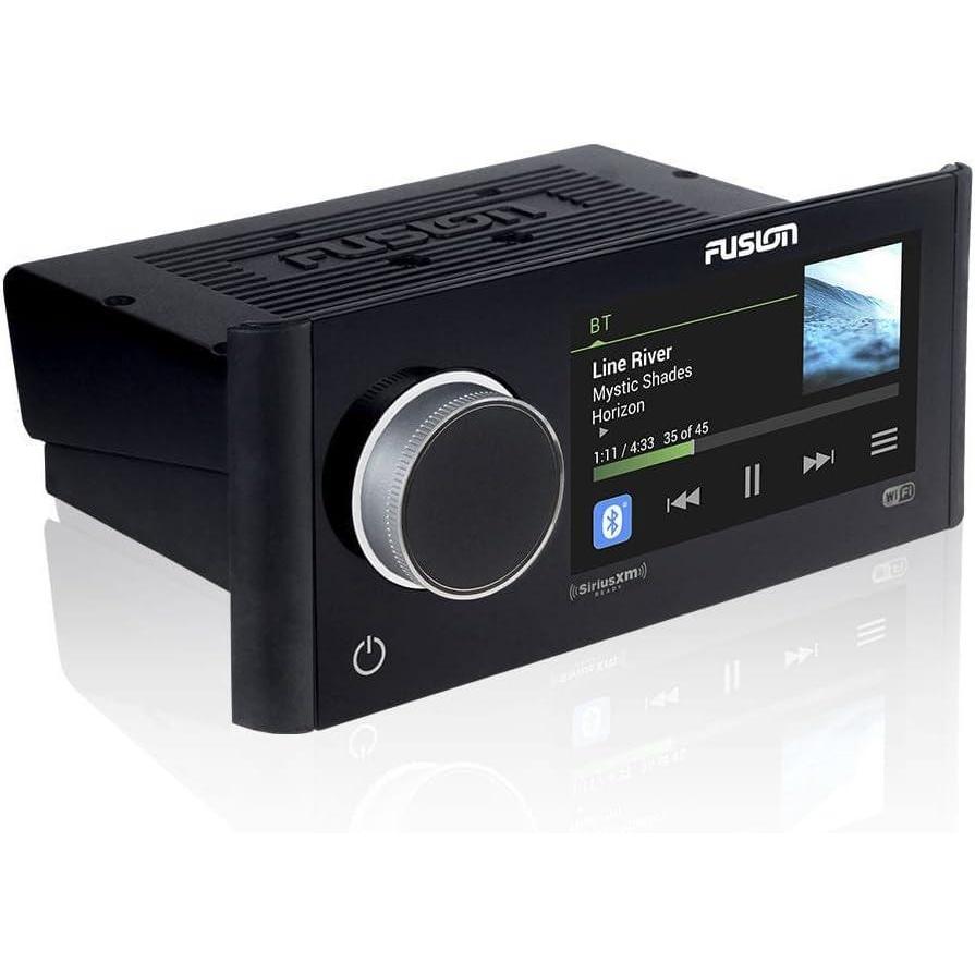 The award-winning Fusion® Apollo™ RA770 is the world's first touchscreen marine stereo with built-in Wi-Fi® and Apple AirPlay® 2 capabilities – redefining audio excellence with revolutionary technology and innovative design. Featuring built-in Digital Signal Processing technology from Fusion, enjoy superior sound quality in every listening environment with custom audio profiles. Fusion PartyBus™-Network gives you the freedom of musical choice on board your boat, allowing you to group multiple networked stereos to play the same audio source in sync. Other features include over-the-air software updates via Wi-Fi, advanced source options and Multi-Zone™ technology in up to 4 independent audio zones for a customized listening experience. With Fusion-Link™ integration, control your audio from compatible multifunction displays, smart devices or Garmin watches. True-Marine™ accredited with a 3 year limited consumer warranty, the Apollo RA770 is a truly premium audio entertainment system – purpose built for the marine environment.