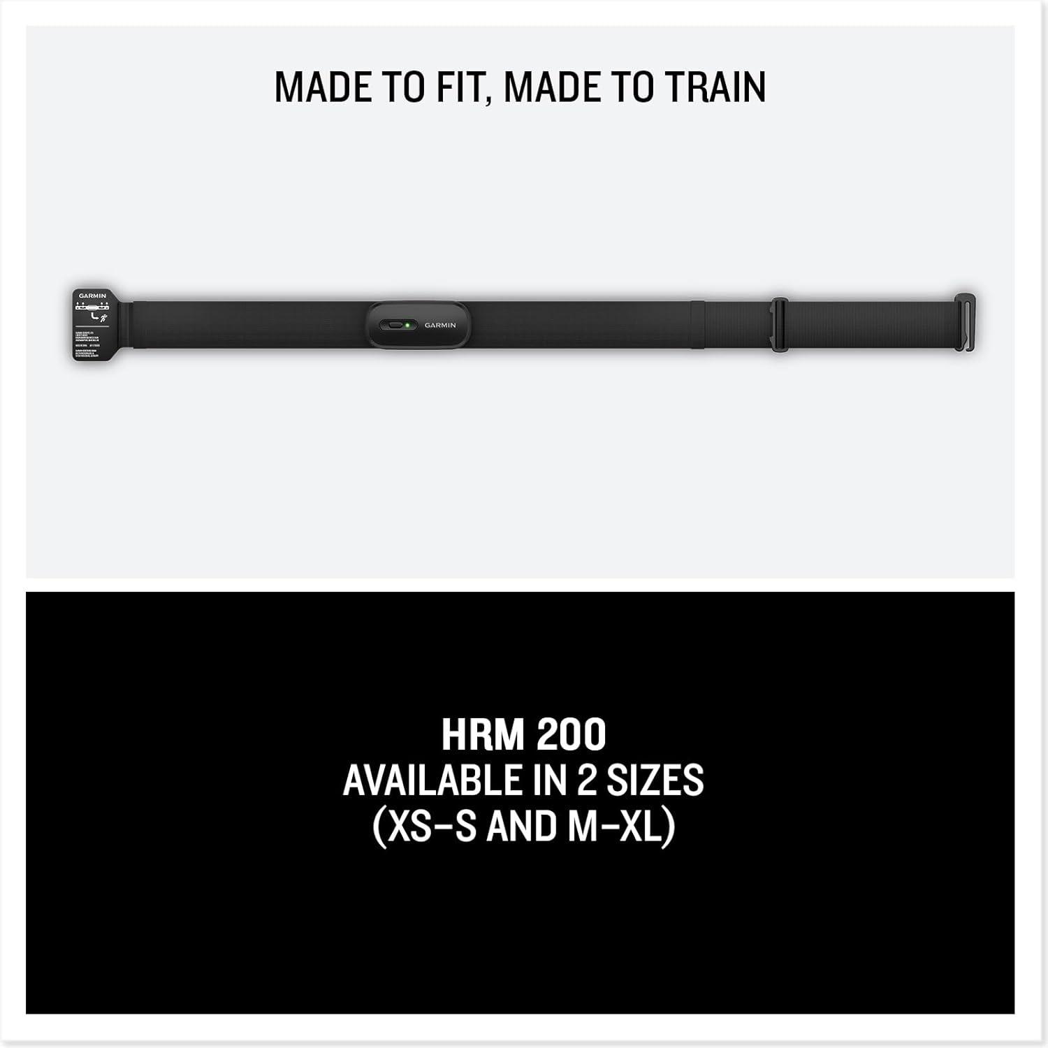 Never miss a beat with the HRM 200 heart rate monitor. This comfortable monitor provides accurate heart rate and HRV data, plus it sends real-time data to compatible Garmin smartwatches and cycling computers, equipment, and apps. Easily adjustable and available in two sizes, HRM 200 keeps you comfortable so you can stay focused on the grind. Push for the long haul with up to 1 year of battery life. For easy cleaning, the HRM 200 monitor strap is machine washable (must remove module).