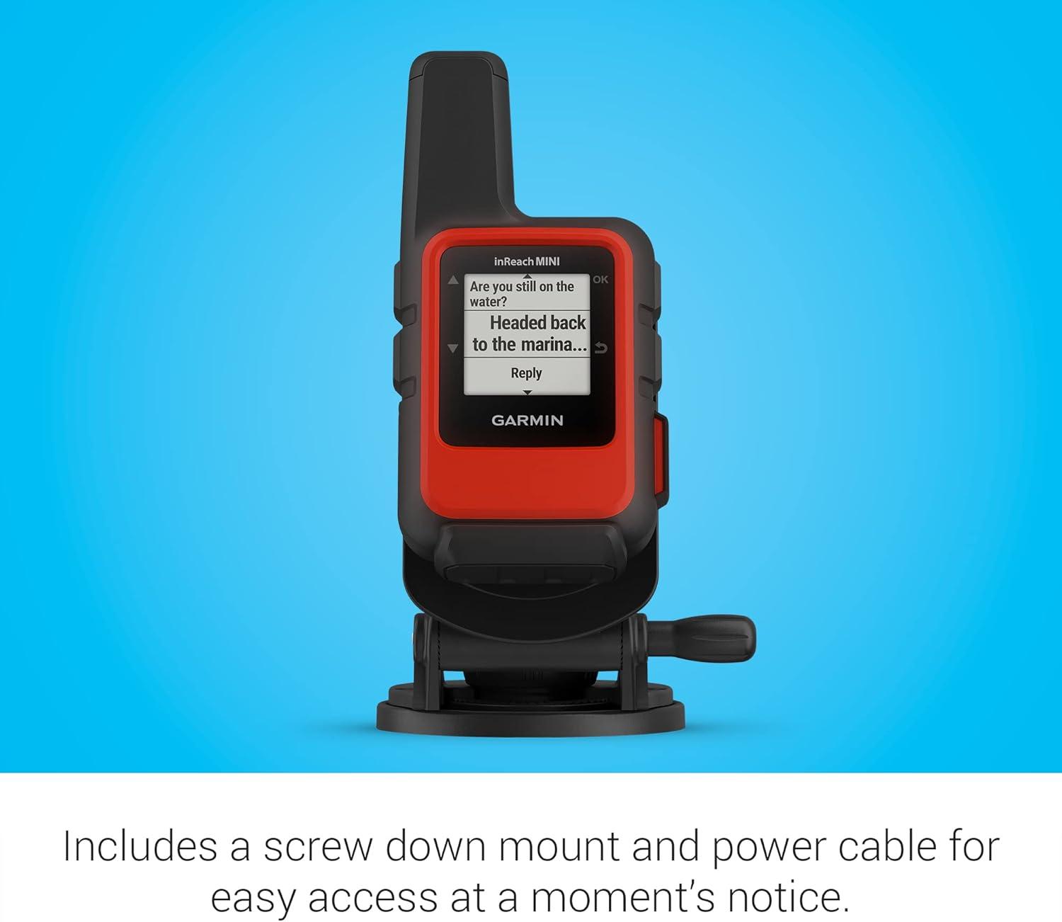 Home is closer than you think with the inReach® Mini 2 marine bundle. This compact satellite communicator lets you send and receive messages, trigger an interactive SOS (active satellite subscription required), track and log your location, and use simple navigation globally. Share your location with loved ones back home by using your MapShare™ page or with your coordinates embedded in your messages. The digital compass delivers accurate heading information, even when you’re not moving. With the screw down mount and power cable, mount the device at your helm for easy access in a moment’s notice. You can even wirelessly pair it with your compatible chartplotter to see messages on your multifunction screen. Some jurisdictions regulate or prohibit the use of satellite communication devices. It is the responsibility of the user to know and follow all applicable laws in the jurisdictions where the device is intended to be used.