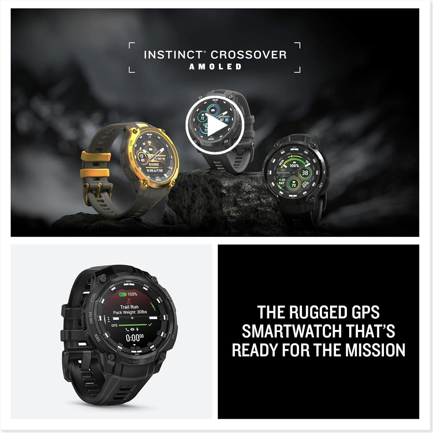 Get your hands on our newest Garmin Instinct® Crossover AMOLED, Rugged Hybrid GPS Smartwatch with Analog Watch Hands and Bright AMOLED Display, Bronze/Sunburst with Cocoa Silicone Band(Black) and enjoy a limited-time discount offer.