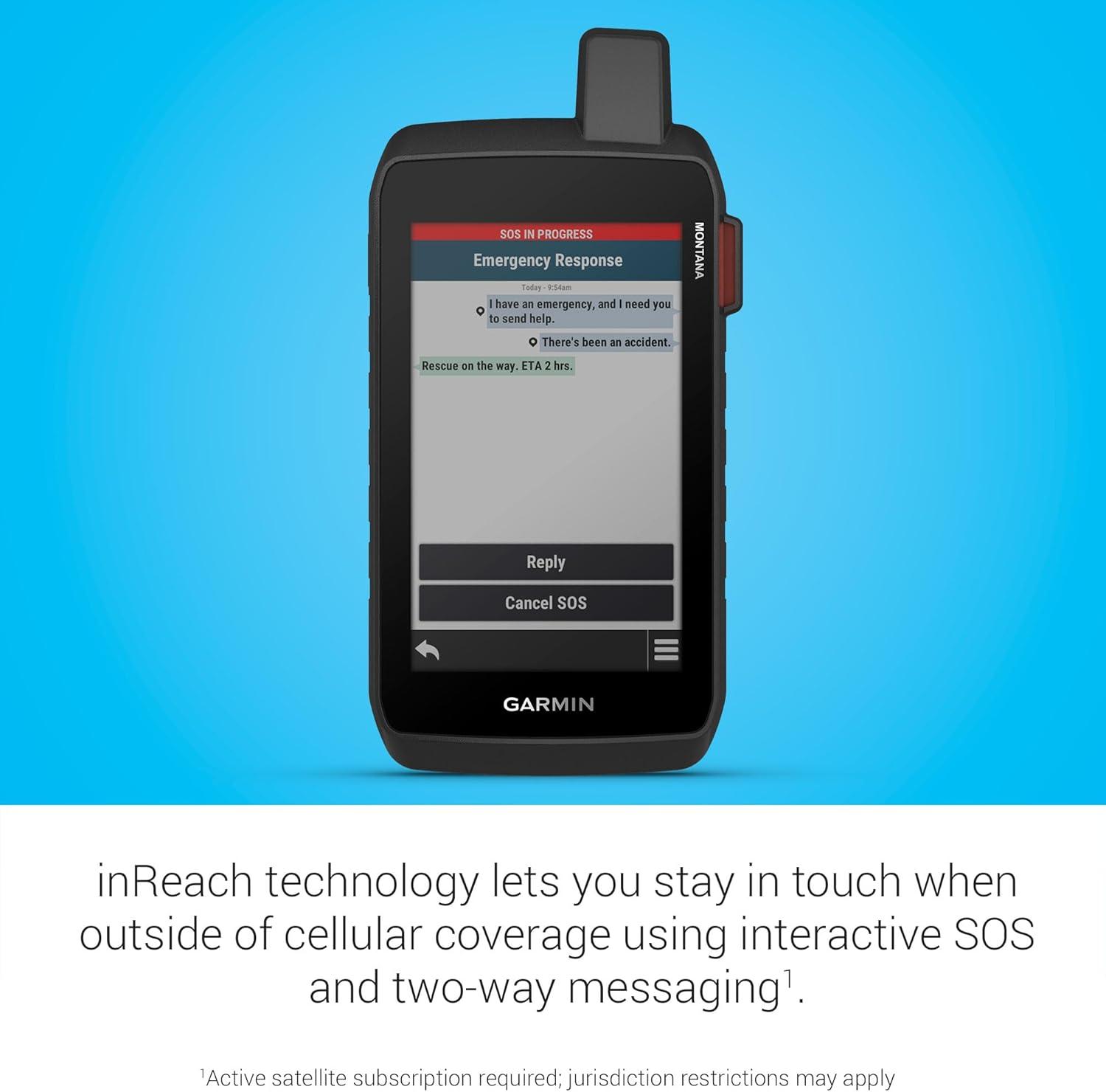 imageGarmin Montana 710i Rugged GPS Handheld Navigator with Builtin inReach Technology for SOS and 2way Texts in Remote Areas 5 Touchscreen Satellite Imagery and Maps for Routing on Roads or TrailsMontana 710i