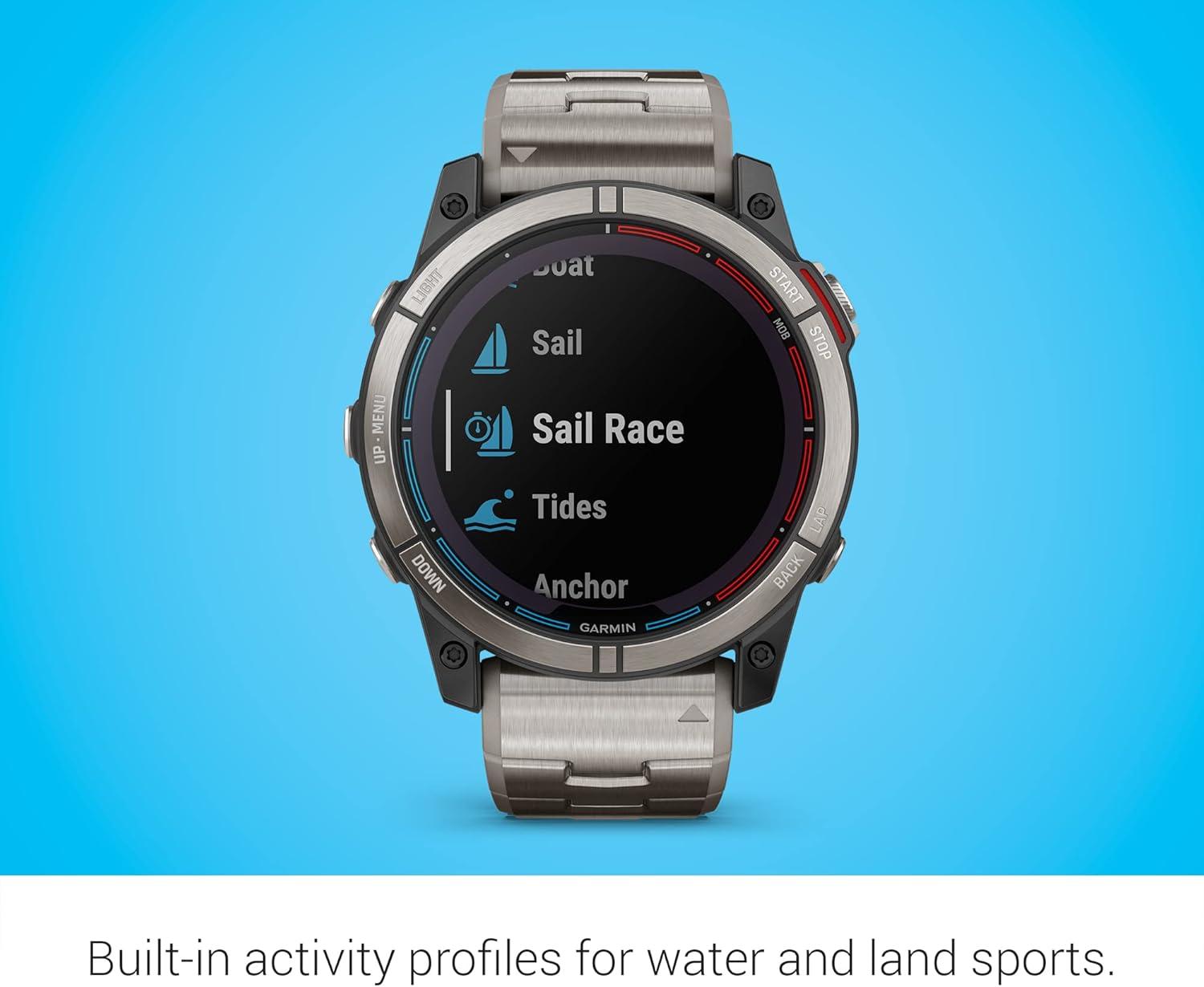 Garmin quatix® 7X Solar Edition, Marine GPS Smartwatch, Solar Charging Capabilities, Durable Watch with Flashlight, Tide Changes and Anchor Drag Alerts, Waypoint Marking(Sapphire Edition)