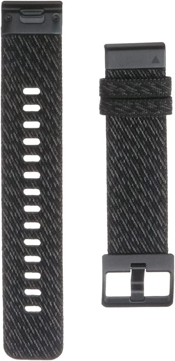 Garmin QuickFit 22 Watch Band – Jacquardweave Nylon Strap – Heathered Black(Heathered Black Nylon with Black Hardware)