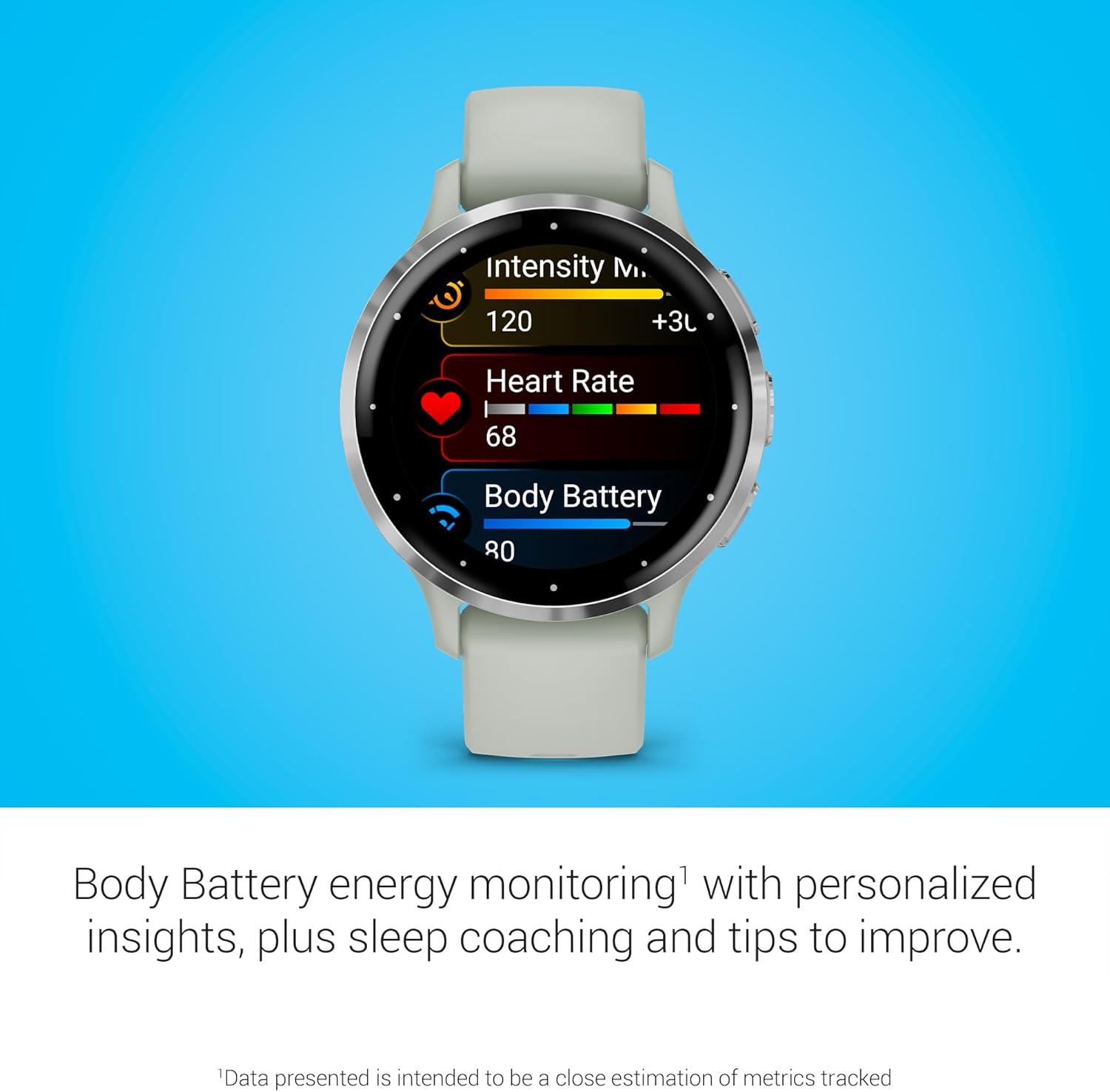 Garmin Venu 3 Silver Stainless Steel Bezel 1.4-Inch AMOLED Touchscreen Display Smart Watch with 45mm Whitestone Case and Silicone Band(Whitestone)