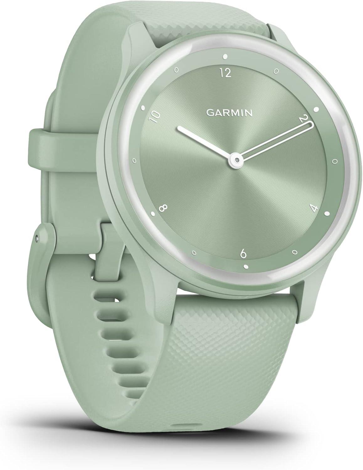 Garmin vivomove Sport, Hybrid Smartwatch, Health and Wellness Features, Touchscreen, White(Light Green)