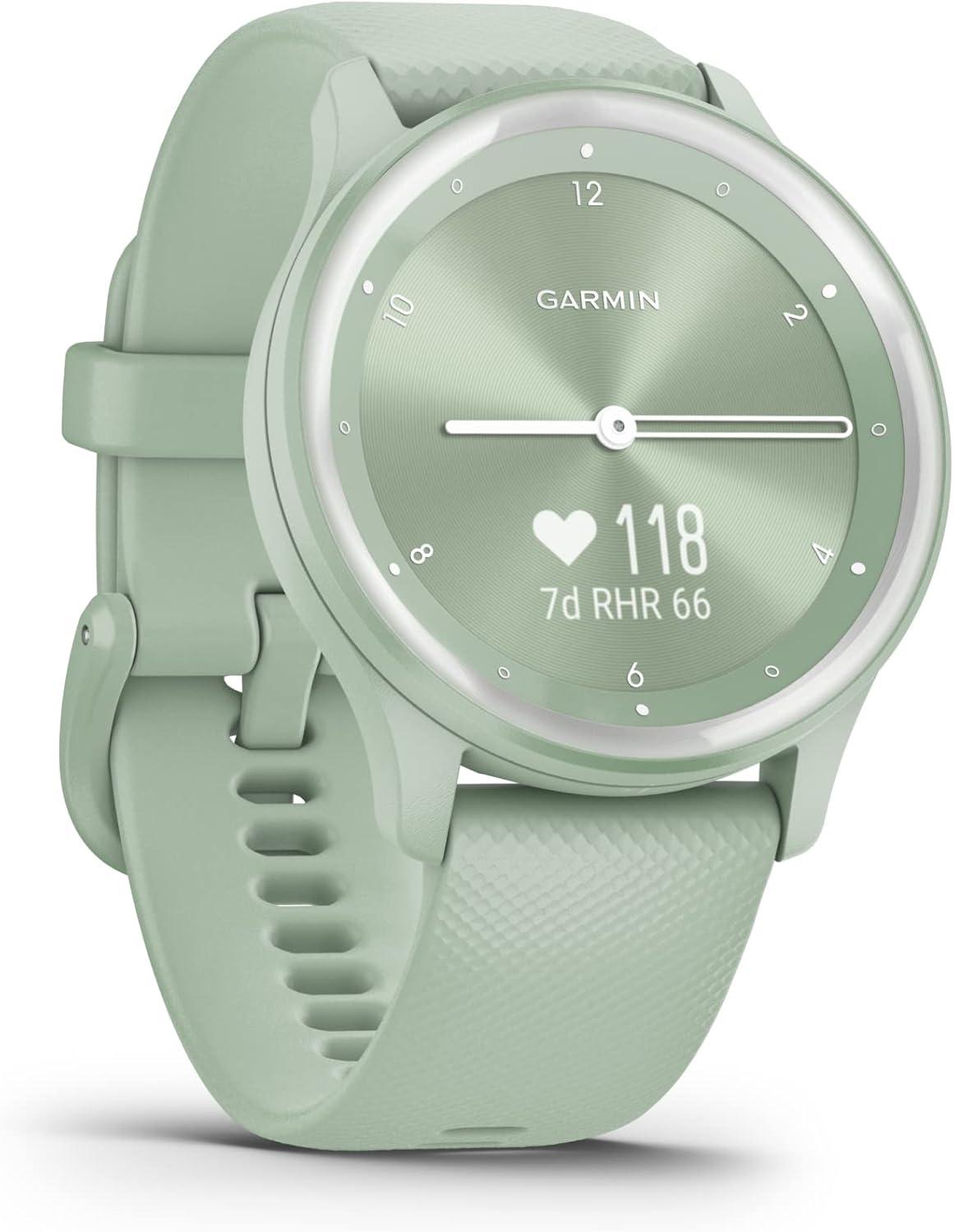 Get your hands on our exclusive Garmin vivomove Sport, Hybrid Smartwatch, Health and Wellness Features, Touchscreen, White(Light Green) collection, now at a discounted price.