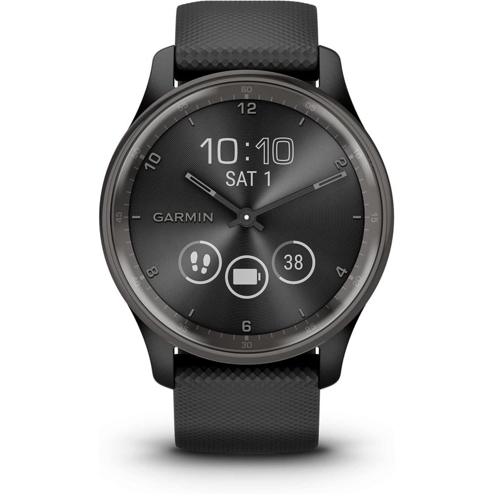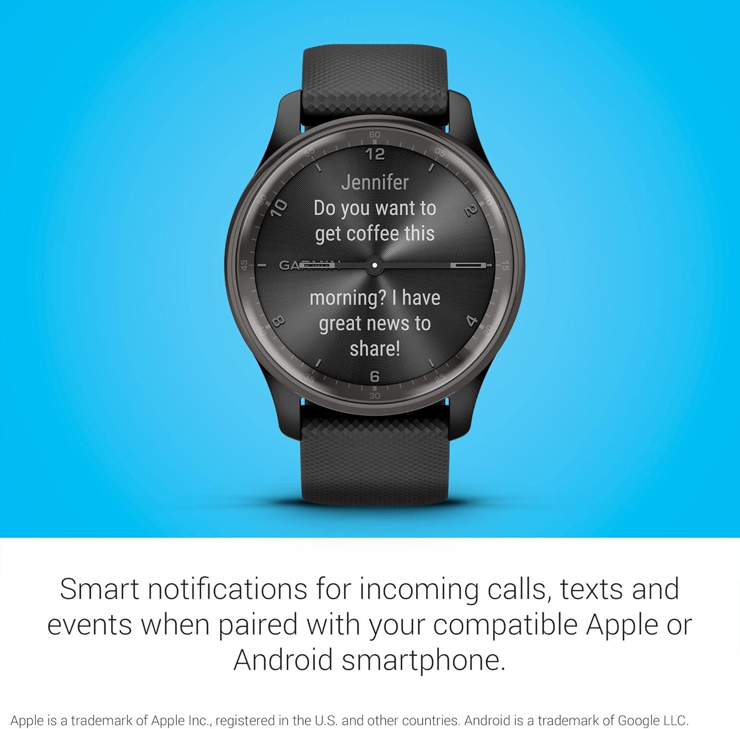 Get a perfect look around the clock. The vívomove® Trend hybrid smartwatch gives you a classic analog style and essential smart features such as notifications on your compatible smartphone and Garmin Pay™ contactless payments. Real watch hands move to reveal a hidden touchscreen display. Live better with a full suite of health and wellness tools, including Body Battery™ energy monitoring, heart rate monitoring, sleep score and more (data presented is intended to be a close estimation of metrics tracked).