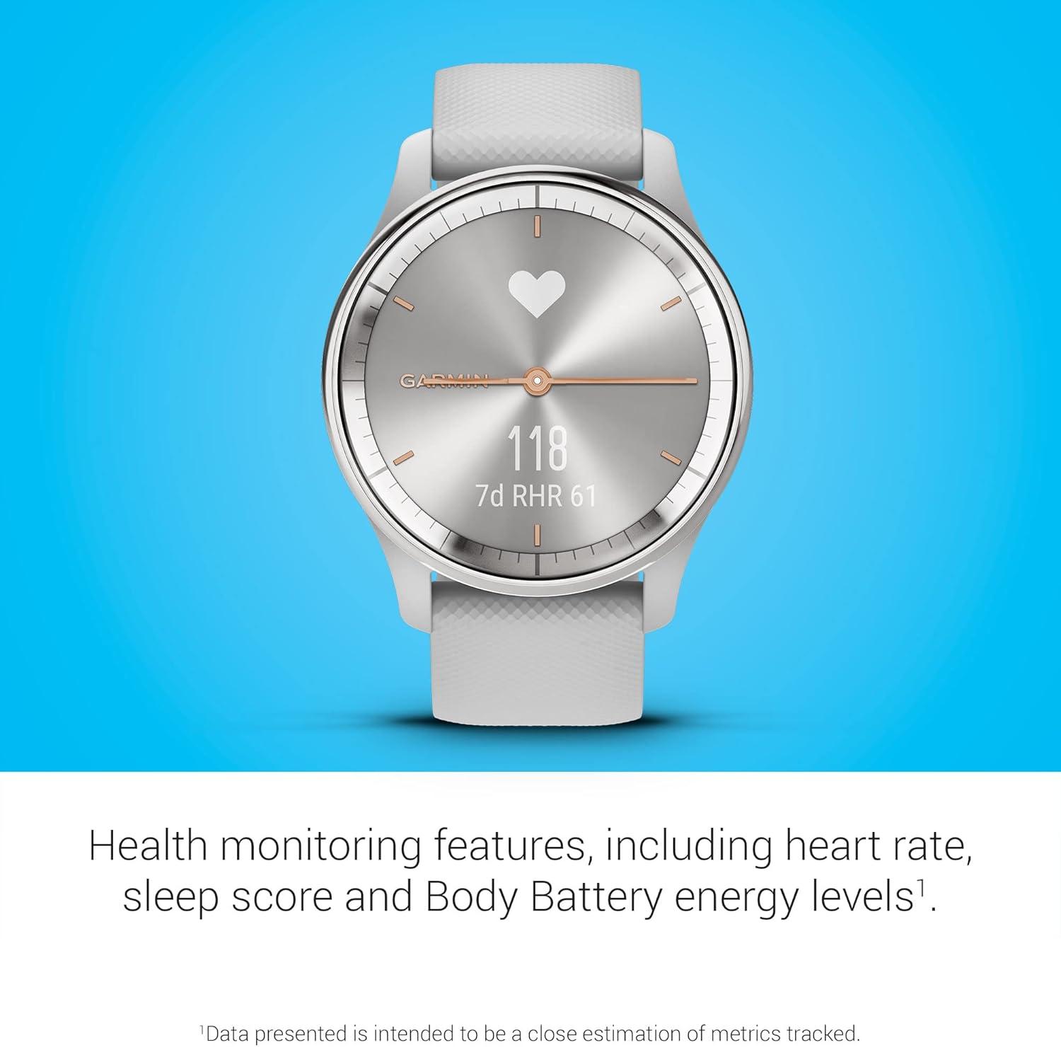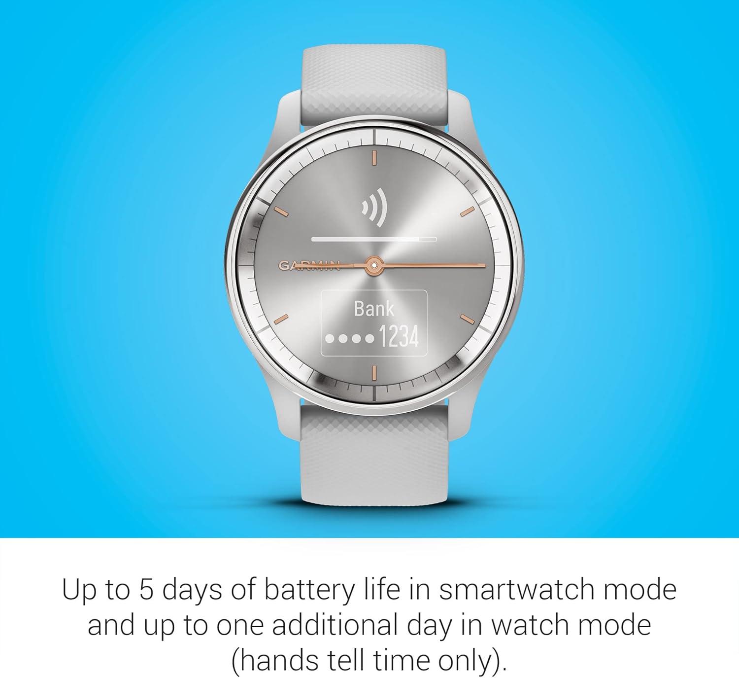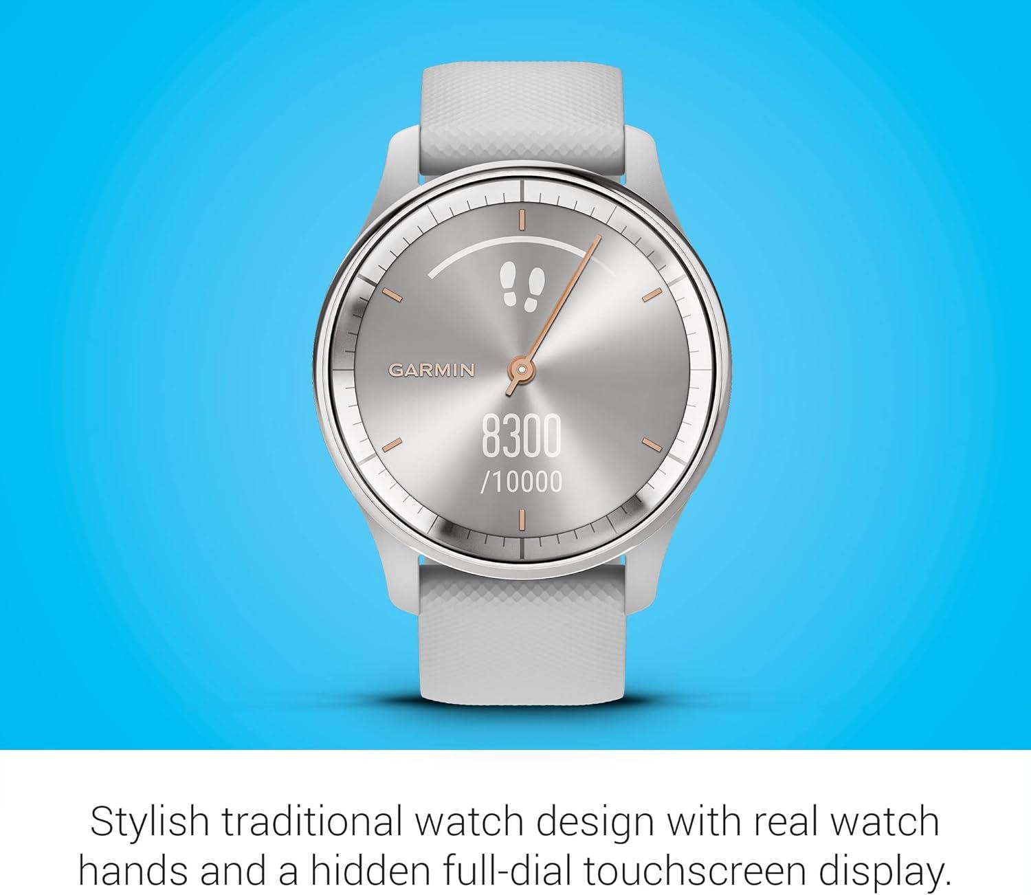imageGarmin vvomove Trend Stylish Hybrid Smartwatch LongLasting Battery Life Dynamic Watch Hands and Touchscreen Display IvoryMist Gray